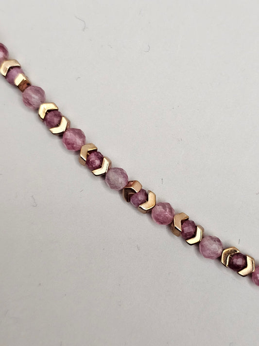 Handcrafted Pink Tourmaline Bracelet with Hematite and Brass Findings - Unique Healing Jewelry